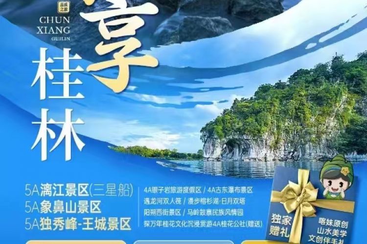 早餐后游览【马岭鼓寨民族风情园】(赠送游览,游览时间约120分钟,含购物场所),参观少数民族独特的建筑,斑驳青石板路和原生态的民族风情,都能给大家带来一份值得珍藏的好照片。寨中原住居民热情好客,保留着许多一批古老的手工作坊。 前往2017年春晚最美会场,桂林城徽--【象鼻山景区】(游览时间40分钟),象鼻山位于桂林市漓江与桃花江汇流处,因山形酷似一头大象而得名,是桂林市天然城徽。是一个集山青、水秀、洞奇、石美于一体的多元化国际精品旅游景区。 漫步桂林“两江四湖”水系的【榕杉湖·日月双塔】,可眺望到座落在杉湖中的【日月双塔】(不登塔),日塔为铜塔,月塔为琉璃塔。两塔之间以18米长的水下水族馆相连。整座铜塔创下了三项世界之最——世界上最高的铜塔,世界上最高的铜质建筑物,世界上最高的水中塔。 【桂花公社】(AAAA级景区,游览时间约60分钟,赠送游览不去不退),前往中国首家沉浸式桂花文化博览园桂花博览园——桂花公社景区,位于桂林诗意桃花湾田园综合体核心地段,由桂花文化体验馆、桂花主题公园、研学实践基地多功能教室、桂花树下度假酒店四部分组成,景区内桂花文化体验馆融权威性、知识性、史学性、体验性、趣味性为一体,诠释了桂花与桂林的共同记忆,在山水间,品一场桂花的人文盛宴,更有多个小红书抖音网红拍照打卡场景,留下更多美好回忆。 | ||||