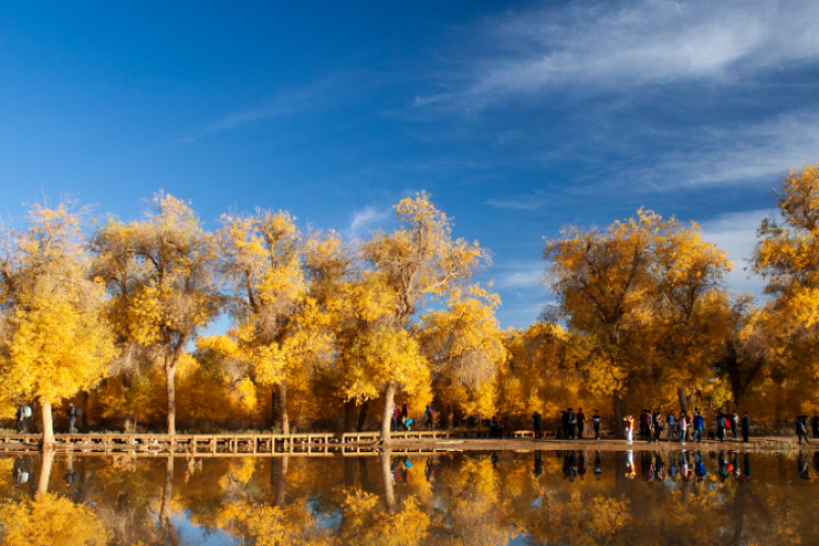 [二道桥]步入倒影林金色的胡杨林与静静的河水相互辉映迷醉无数人的心灵,胡杨在晨光熹微中等待日出,驻足情侣树见证它们千年的生长、千年的相扶和千年的不离不弃。塔王府见证土尔扈特蒙古族“和平起义”、“三易旗府”等一次又一次的爱国壮举。