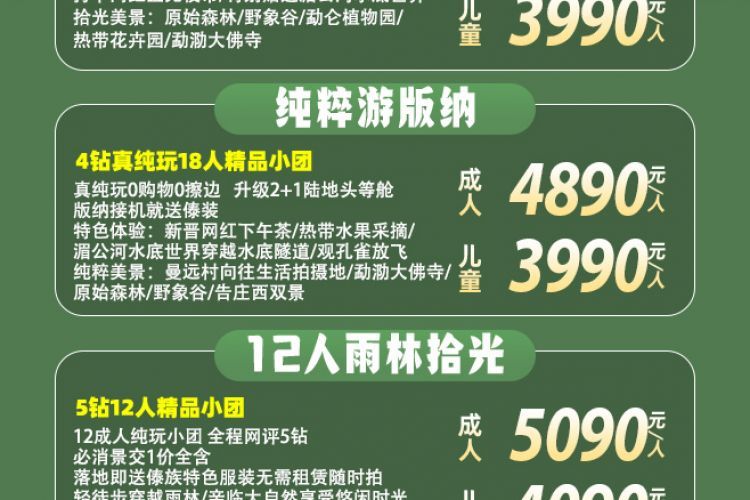 13:00--14:00午餐后早餐后前往游览理想而神秘的热带雨林探险圣地、国家4A级景区【野象谷】(游览时间约120分钟,不含索道,景区内的商业板块与旅行社无关)游览攻略:
