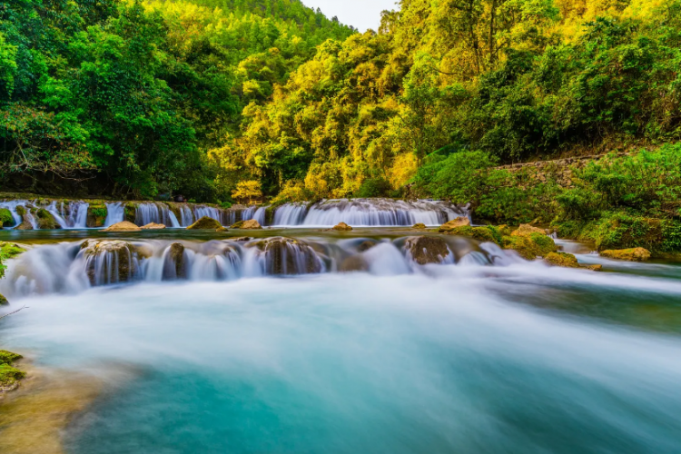 早餐后,9点出发,乘车前往荔波,游览世界自然遗产地,国家级AAAAA景区,中国最美丽的地方【小七孔景区】(不含电瓶车40元/人,保险10元/人,必须消费敬请自理)。景区坐落在宽仅1公里、长12公里的狭长幽谷里,集洞、林、湖、瀑、石、水多种景观于一体,玲珑秀丽,有“镶嵌在地球腰带上的绿宝石“的美誉。游览景区名字由来地【小七孔古桥】,古桥建于清代道光十五年(1835年),桥长25米,桥面宽1.8米,拱高4米,横跨响水河,昔为沟通荔波至广西的重要桥梁,桥由麻石条砌成,桥身爬满藤募和蕨类,古色古香的桥下是涵碧潭。两岸古木参天,巨大的虬枝沿着桥伸臂,宛如巨伞撑在桥上。欣赏景区灵动多姿的各色瀑布:【68级跌水瀑布】顺贽而下,奔泻而去;【拉雅瀑布】精巧醉人,水珠飞溅;【卧龙潭瀑布】银丝泻地,潭水色彩斑斓绚丽;【翠谷瀑布】在群峰紧锁中苍翠欲滴。感受赤足湿身乐趣的【水上森林】,清澈的水流冲刷着青石,行走于其中,宛若身临琼瑶仙池;在【鸳鸯湖泛舟】(不含鸳鸯湖游船30元/人,非必须消费项目,自愿消费)—寻找一份爱情;妩媚而迷人的【响水河】更是贯穿了整个风景区。