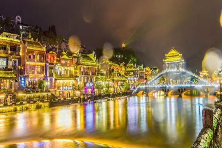 前往神秘湘西深处【凤凰古城】(景区接驳车已含),这里被誉为远去的家园,梦中的故乡,邂逅凤凰的灯火阑珊,品味独特的梦里苗疆,体验和感受凤凰古城的九大精华:一座青山抱古城、一泓沱水绕城过、一条红红石板街、一道风雨古城墙、一座雄伟古城楼、一个美丽彩虹桥、一排小桥吊脚楼、一批闻名世界的人、一个国家级非遗文化遗产!在美丽的沱江两岸欣赏【七重水幕灯光秀】,她是中国首个以苗族文化为故事线的夜游大作。以呈现苗族文化为核心,将国画、动漫、真人实拍、电影视听、实景搭建、夜游装置、光影设备等多种表现形式进行巧妙融合,感受灯火阑珊之凤凰,和烟雨凤凰!