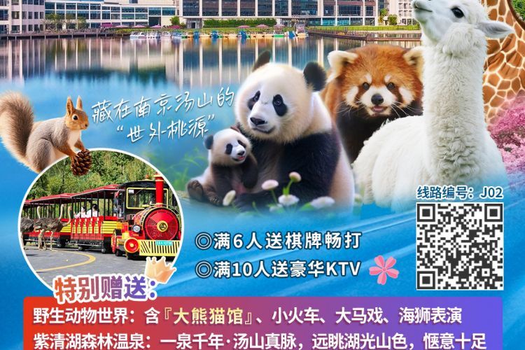 【J02】藏在南京汤山的“世外桃源”2晚『紫清湖温泉度假酒店』599元享森林温泉◆享4正2早,野生动物园邂逅国宝熊猫◆免费棋牌+KTV度假天花板三天